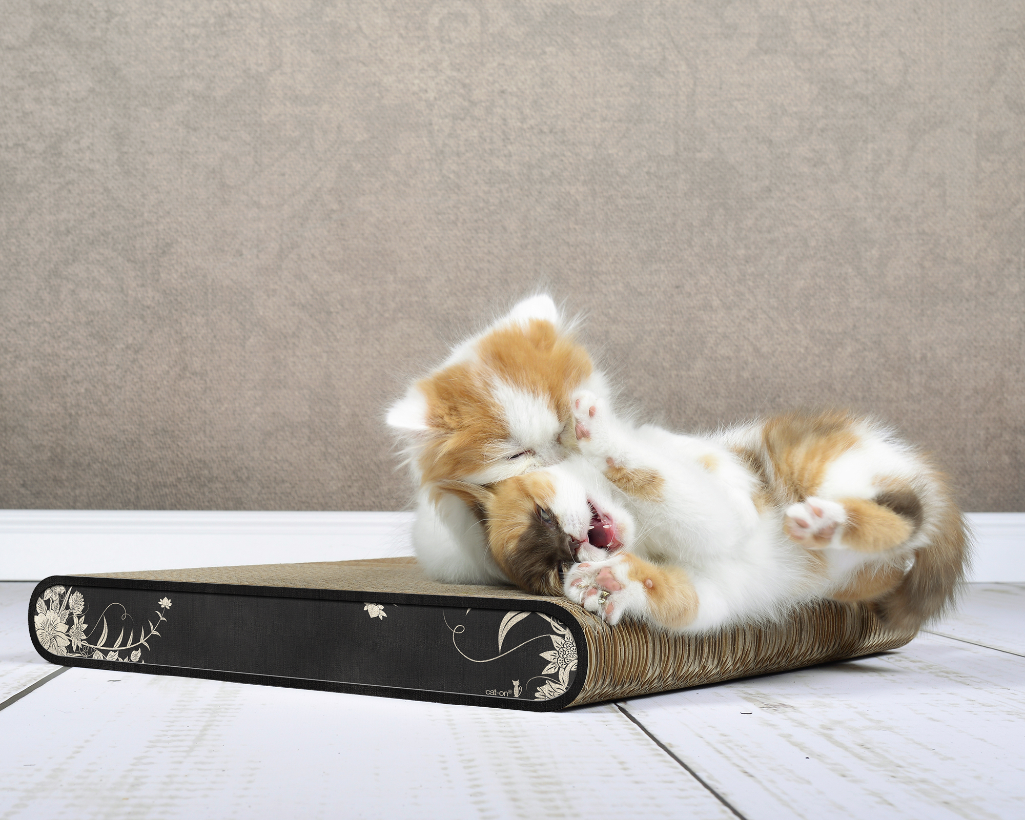 Umweltfreundliche, plastikfreie und individuell konfigurierbare Kratzbretter, auf die sich meine beiden Kater stürzen, sowie ich sie auspacke.